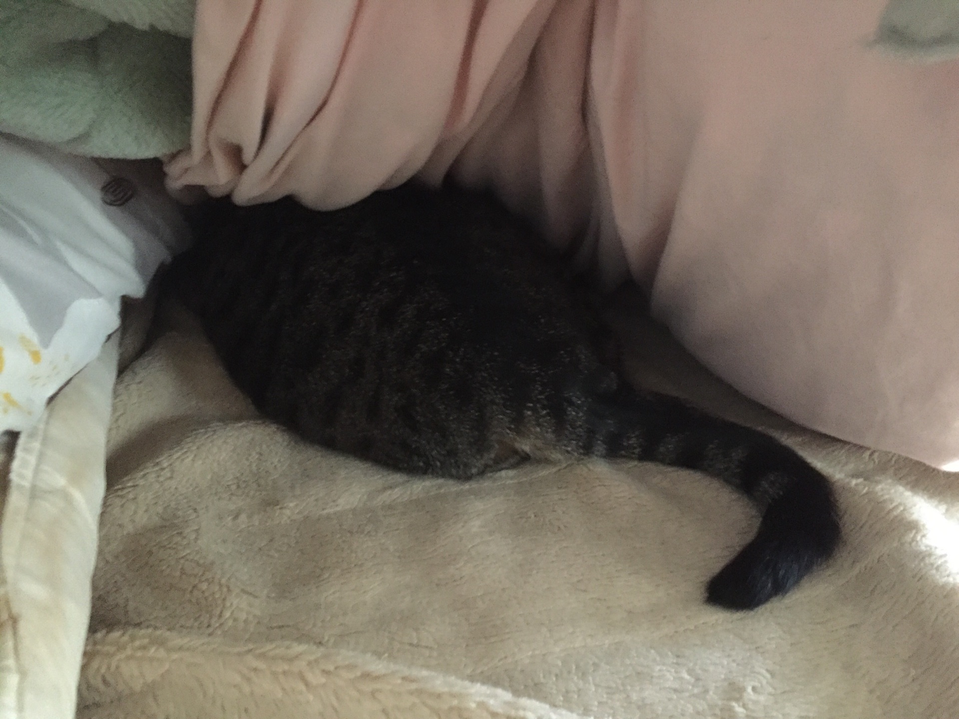 明け方、布団に入れてと中に。